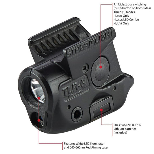 Streamlight TLR-6 for Glock 42/43 100-Lumens with Red Laser Tactical Weapon Light Black