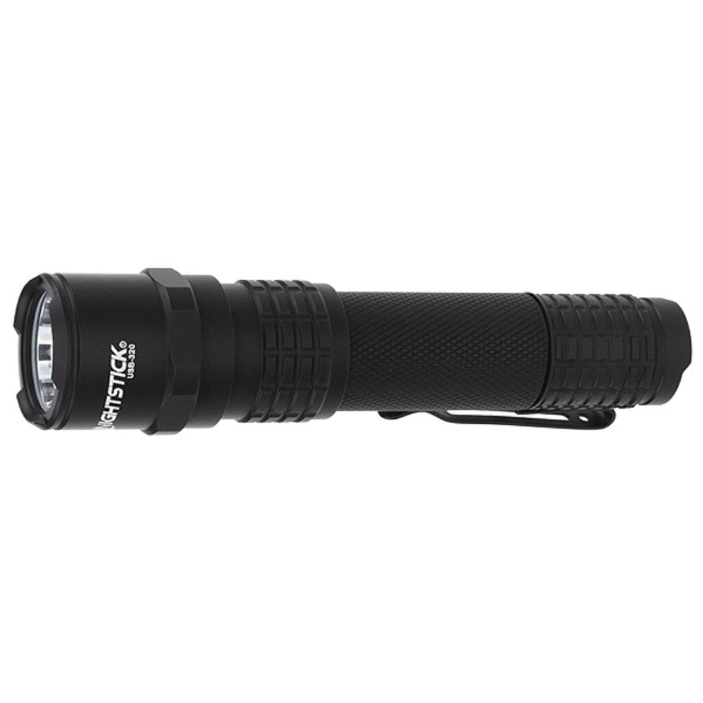 The Nightstick USB-320 USB Rechargeable Every-Day-Carry (EDC) Metal Flashlight uses a CREE LED rated at 320 lumens for 1.5 hours. At only 4.5 inches long and weighing only 3 oz, this compact flashlight includes a removable deep concealment clip for ease of use in and out of a pocket. With both momentary or constant-on functionality, the USB-320 features an IP-X7 rated waterproof housing with sleeved collar that discretely opens for direct USB charging turning from red to green when fully charged. Meeting the requirements of NFPA-1971-8.6 (2013), the USB-320 is also chemical, heat and impact resistant, and includes a 2 foot USB charging cable and lithium-ion rechargeable battery.